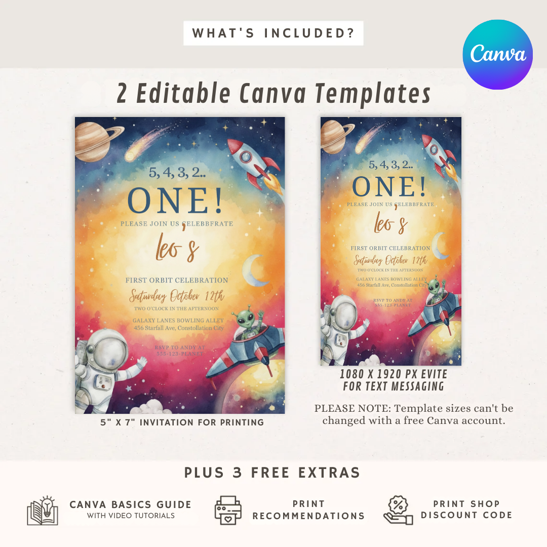 Boy's First Orbit Birthday Invitation Template | Editable Outer Space Party Invite | Astronaut Galaxy 1st Birthday | Printable Digital Download