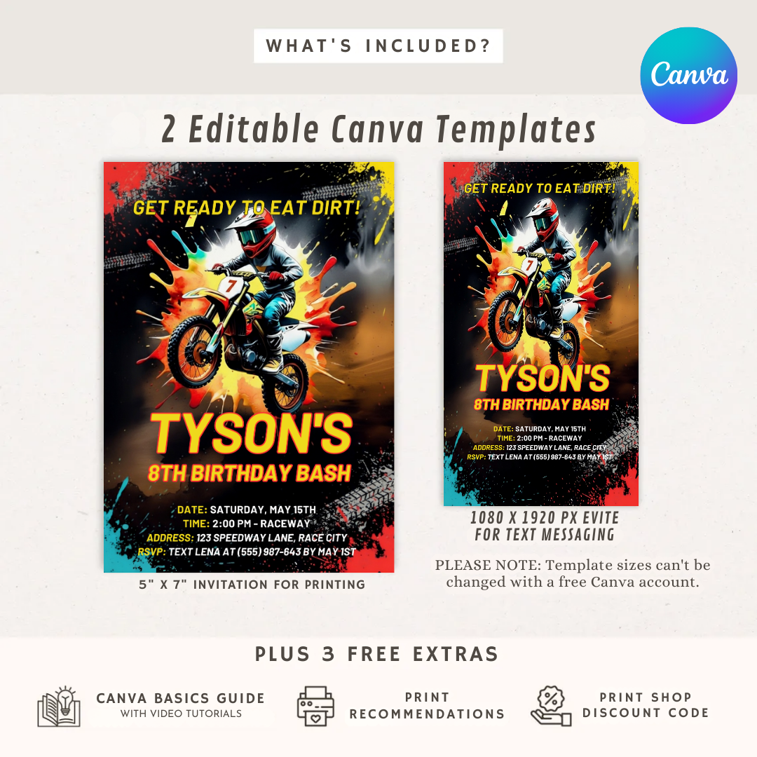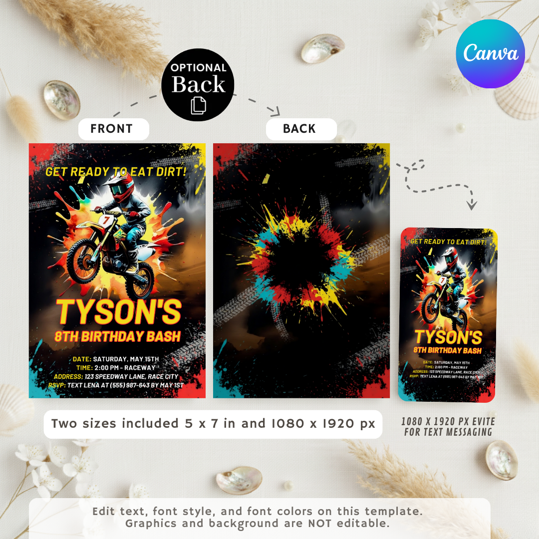 Boy's Motocross Birthday Invitation | Editable Dirt Bike Party Template | Racing Invite for Kids | Printable | Instant Download | Eat Dirt