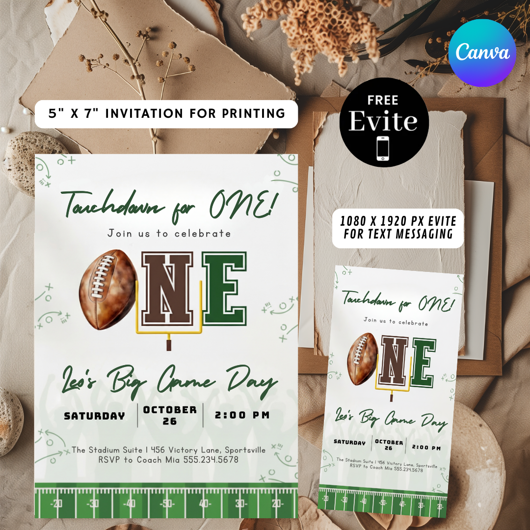 Football First Birthday Invitation Boy | Touchdown for One Invite Template | Editable Big Game Day Party | Digital Evite | Instant Download