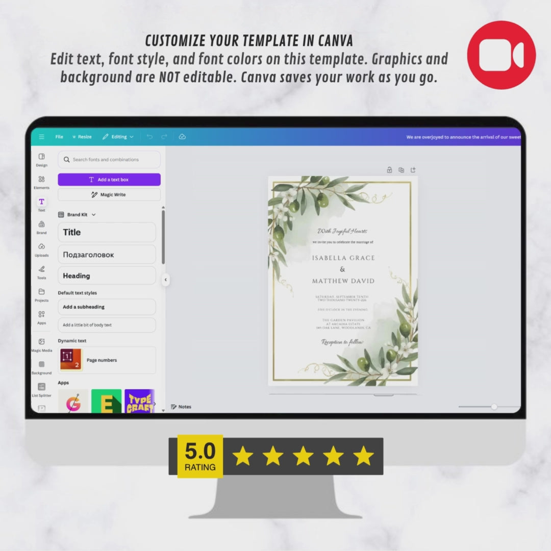This listing offers an editable template for you to customize yourself on Canva.com. Canva is an online editing platform that makes it easy to access and edit your template using your browser or the Canva mobile app.