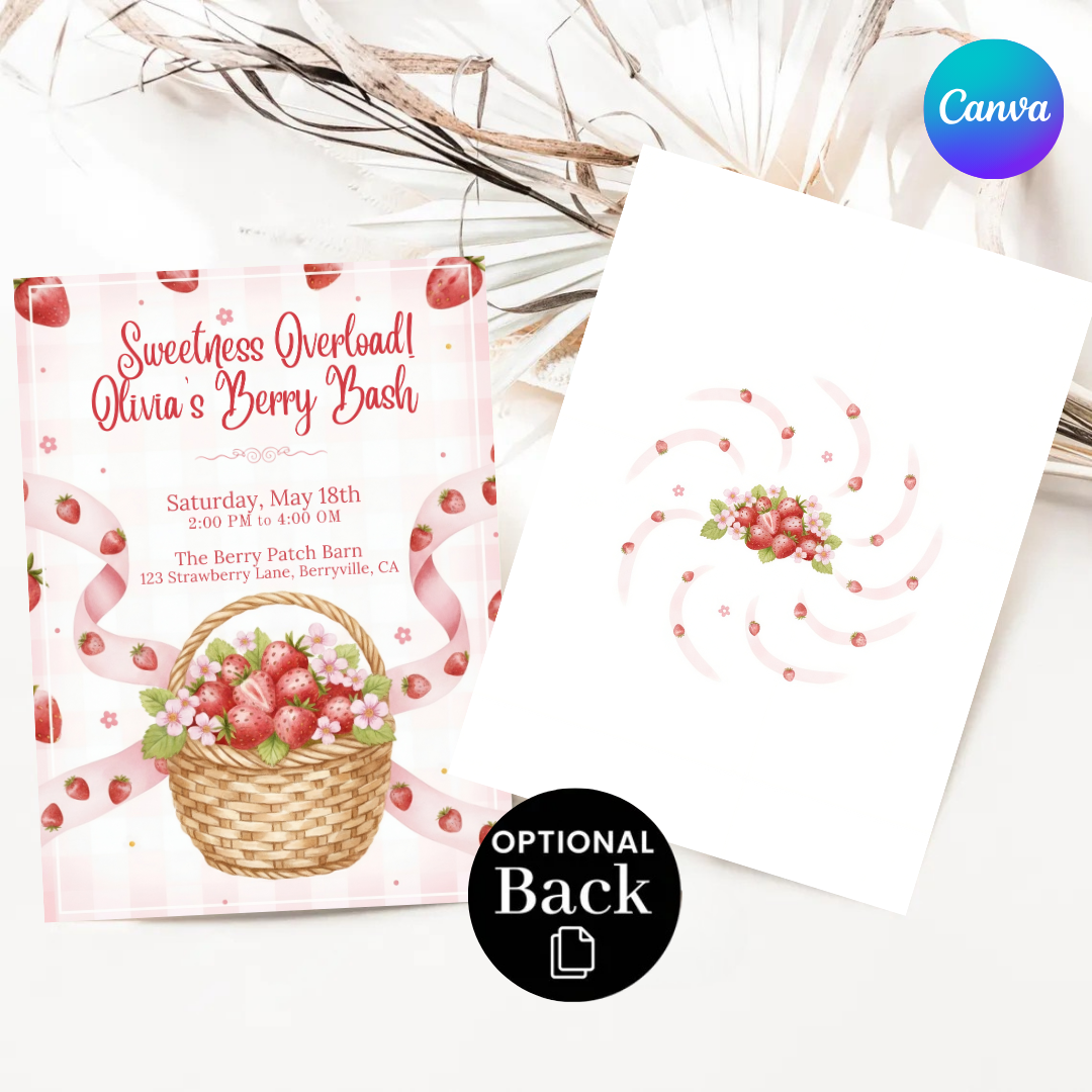 Strawberry Birthday Invitation Girl | Berry First Birthday Invite Template | Editable Sweetness Overload Party | Printable Digital Instant Download