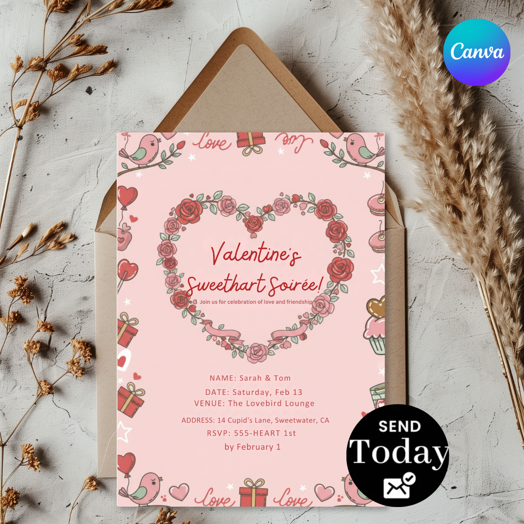 Valentine's Day Invitation Template | Editable Sweetheart Soirée Invite | Couples Party or Galentine's Invite | Printable | Instant Download