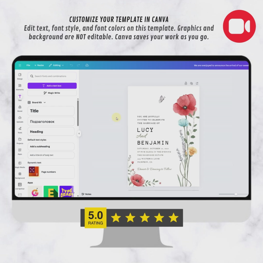 This listing offers an editable template for you to customize yourself on Canva.com. Canva is an online editing platform that makes it easy to access and edit your template using your browser or the Canva mobile app.